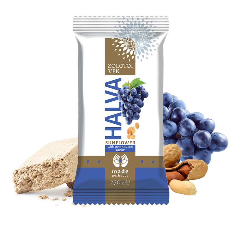 Chałwa słonecznikowa z Orzeszkami Ziemnymi i Rodzynkami Złoty Wiek [średnia porcja 270g]