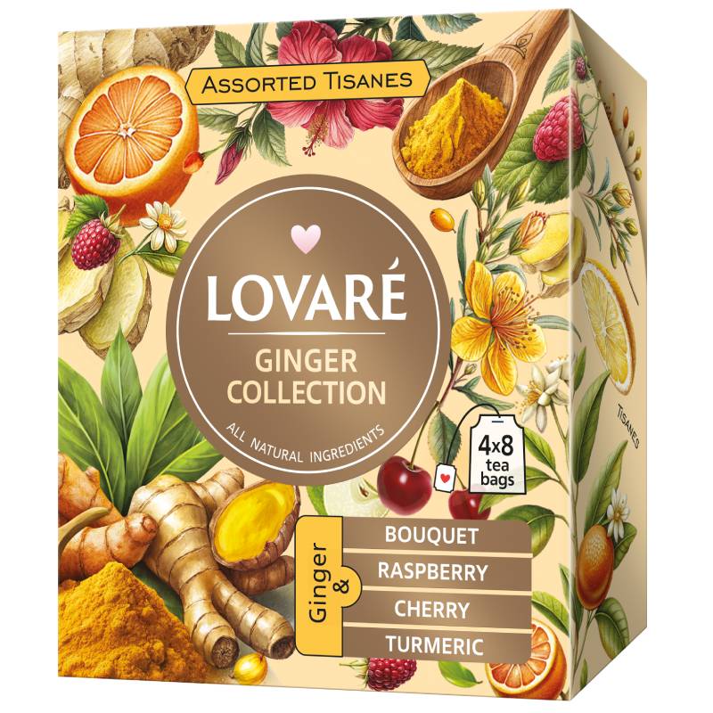 Zestaw Lovare Assorted Ginger to starannie dobrana kolekcja herbat z dodatkiem imbiru, znanego ze swoich właściwości rozgrzewających, przeciwzapalnych i wspomagających trawienie. Idealny wybór na chłodniejsze dni, okresy osłabienia i codzienne chwile relaksu.